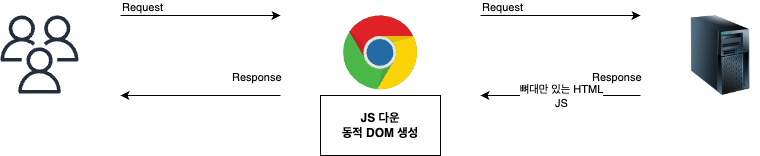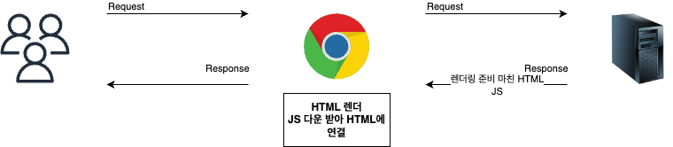 SPA는 웹 애플리케이션에 필요한 리소스들을 요청 초반에 한 번에 모두 다운로드하고 이후 새로운 갱신 사항이 있을 때 필요한 데이터만 다운로드하여 클라이언트에서 갱신하는 특징 때문에 자연스럽게 CSR 방식으로 렌더를 합니다